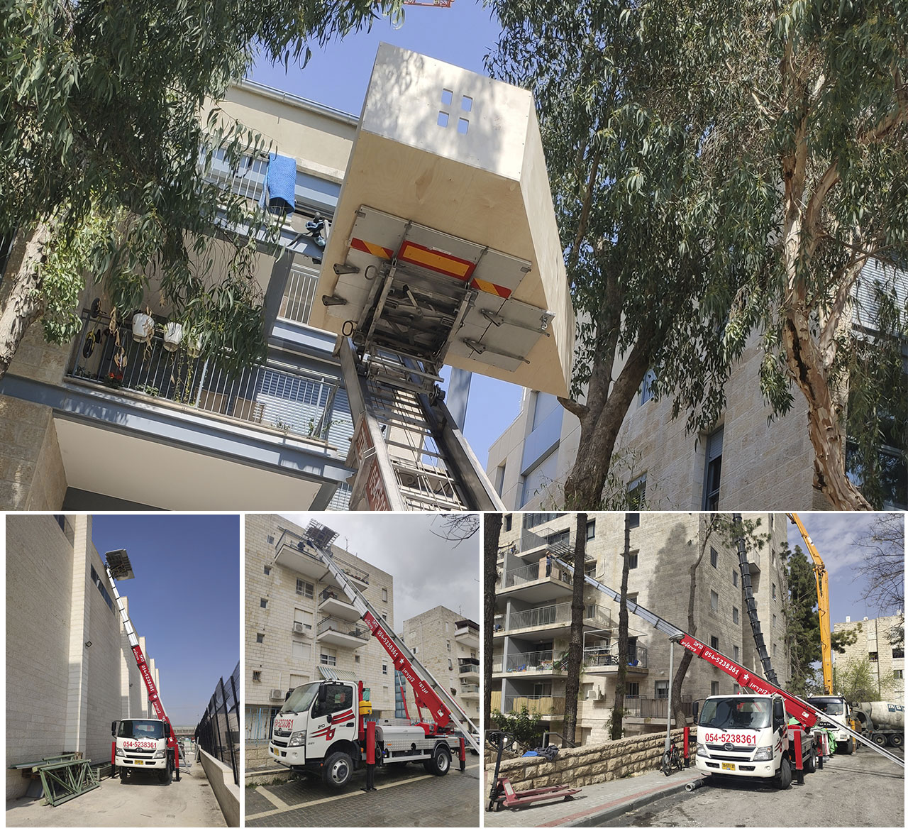 - מנוף הרמה באשכולות להעברת דירה – עד 45 מטר