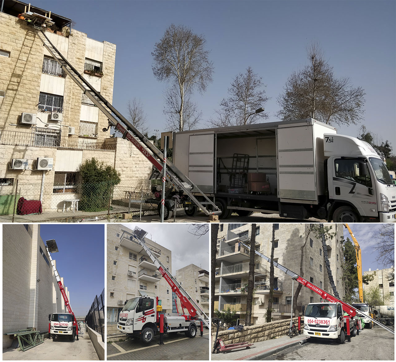 - מנוף הרמה בבית צפאפא שכונה בירושלים להעברת דירה – עד 45 מטר